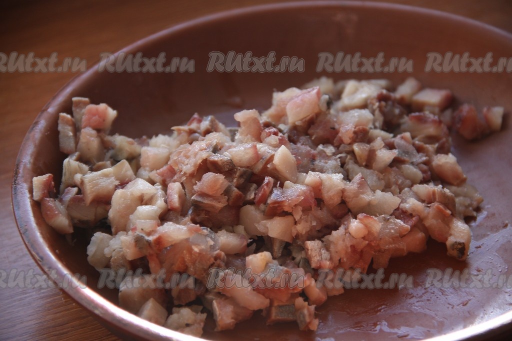 Селедку очистить от внутренностей, кожи и косточек, вымыть, обсушить и мелко нарубить ножом.