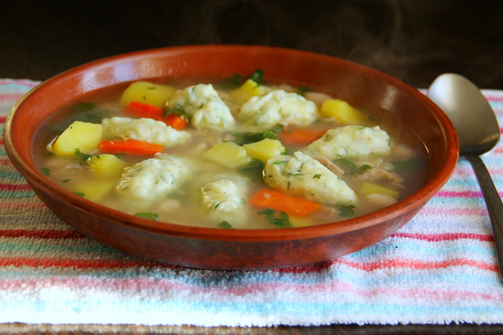 Аппетитный, вкусный суп с фасолью и клецками готов.