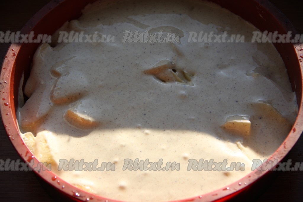 Духовку разогреть до 160-180 градусов. Поставить в разогретую духовку и выпекать 40 минут. Ароматную, вкусную шарлотку с мёдом и яблоками посыпать перед подачей сахарной пудрой.