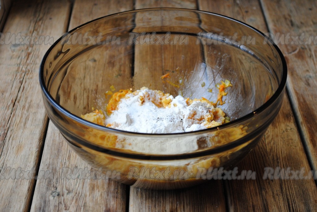 Добавить соль, чёрный молотый перец и 3 столовые ложки муки, хорошо перемешать.