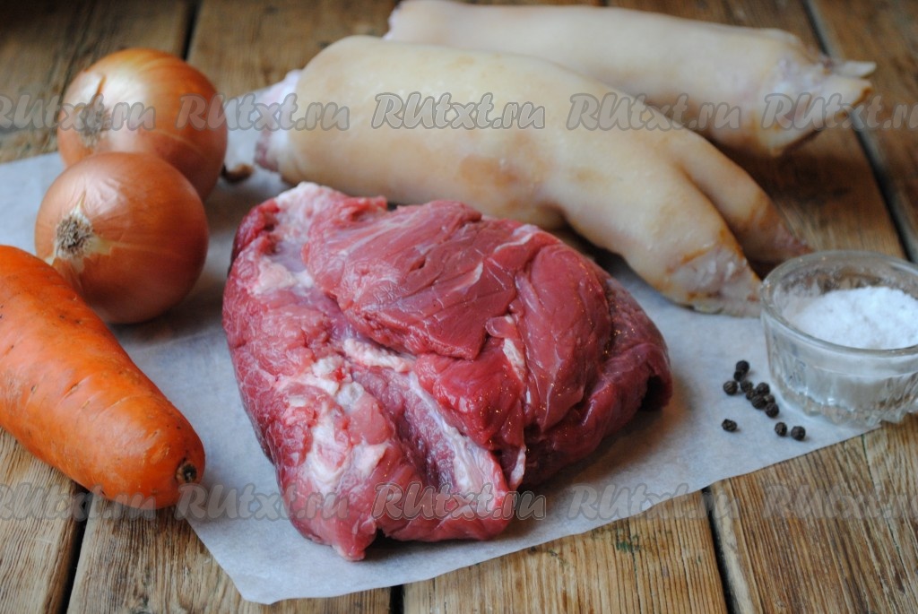 Для приготовления холодца из говядины и свиных ножек потребуется: