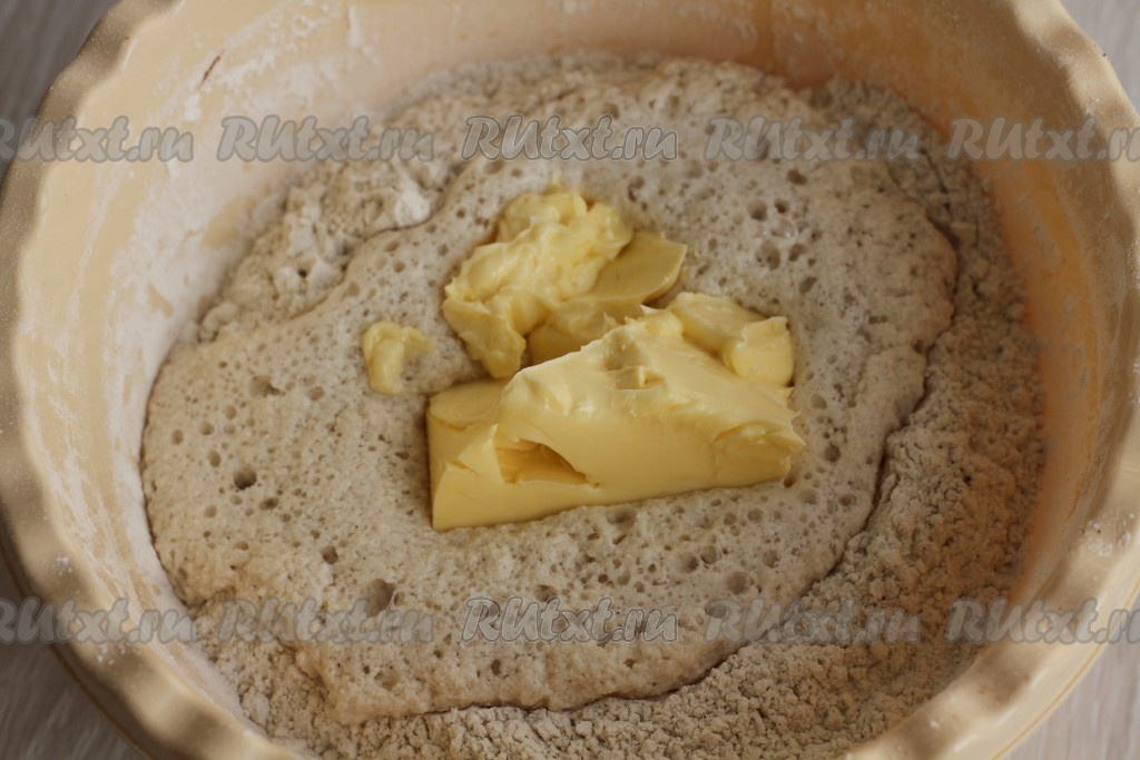 Замесить тесто руками и накрыть пленкой, оставить в теплом месте на 40 минут (или пока тесто не увеличится вдвое).