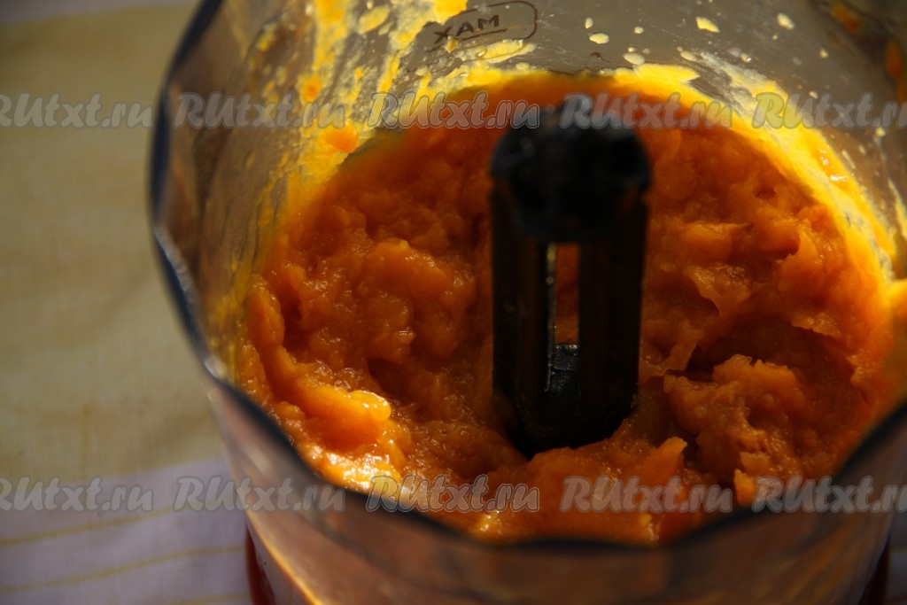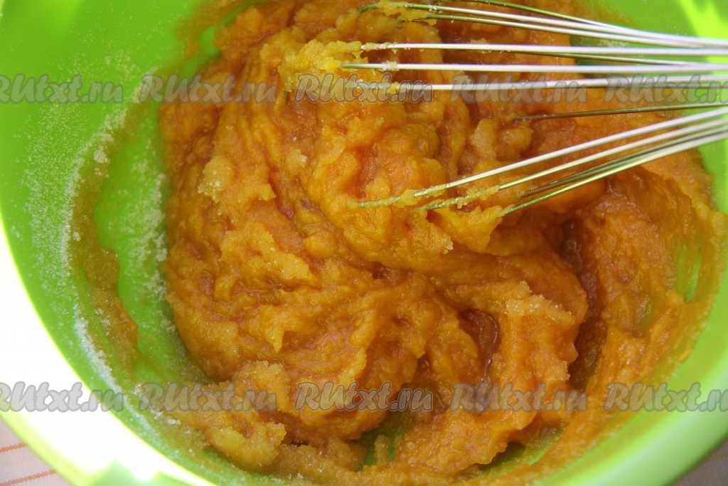 Сахар взбить с тыквенным пюре.