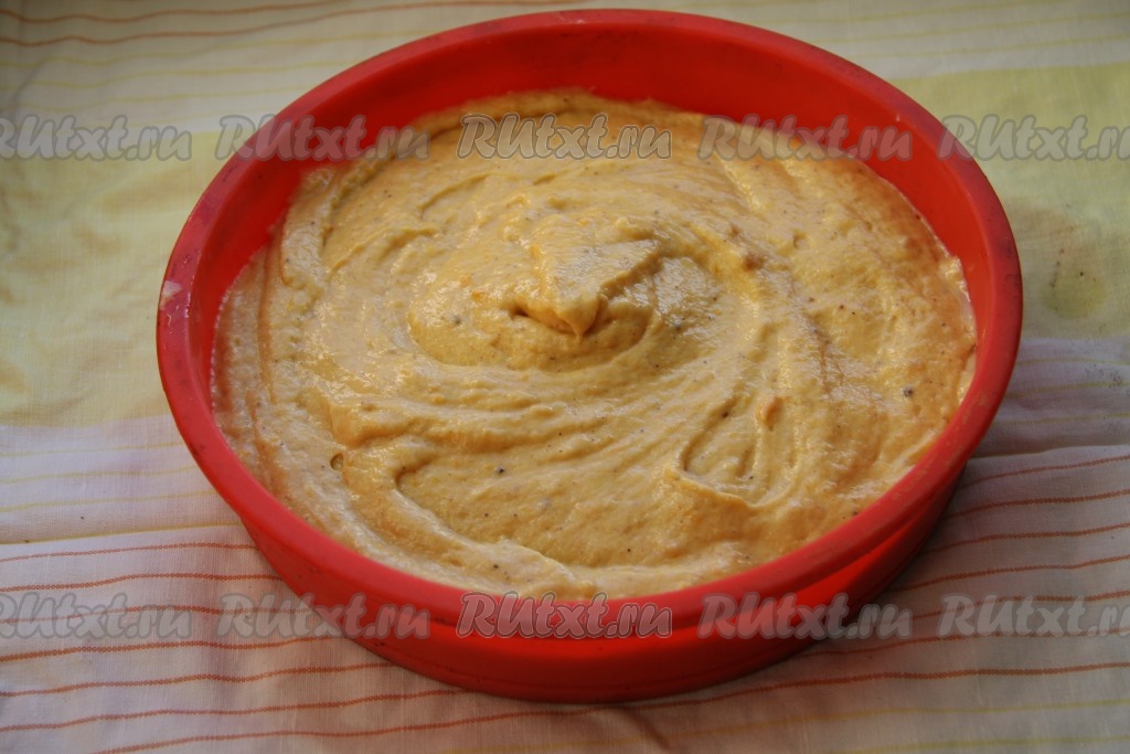 Вылить тесто в форму для выпечки, смазанную маслом, и отправить в горячую духовку. Я выпекала в силиконовой форме диаметром 22 сантиметра (силиконовую форму можно не смазывать маслом).