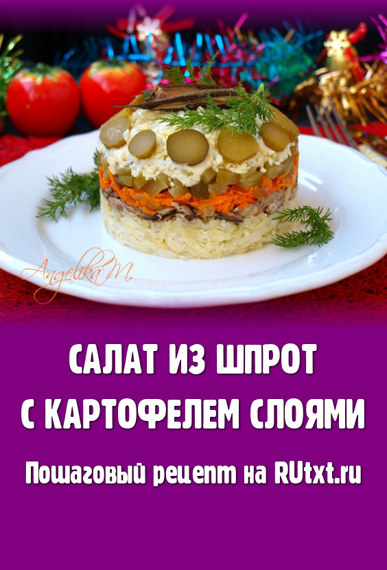 Предлагаю вам приготовить вкусный салат из шпрот с картофелем. Салатик выкладывается слоями и смотрится на столе очень эффектно. Шпроты придают салату нотки копчёности, получается интересный, пикантный вкус. Салат можно приготовить в глубоком салатнике или с помощью кулинарного кольца выложить на плоскую тарелку. Также салат можно приготовить в порционных салатниках.