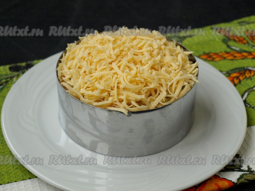 Салат хорошо перемешать и выложить в формовочное кольцо на тарелку.