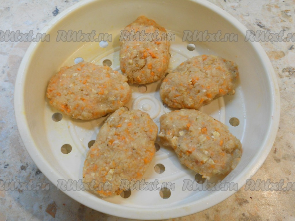 Фарш тщательно вымешать и оставить минут на 15. Затем влажными руками сформировать котлеты среднего размера. Чашу мультиварки (или пароварки) немного смазать растительным маслом и разместить в ней рыбные котлеты.