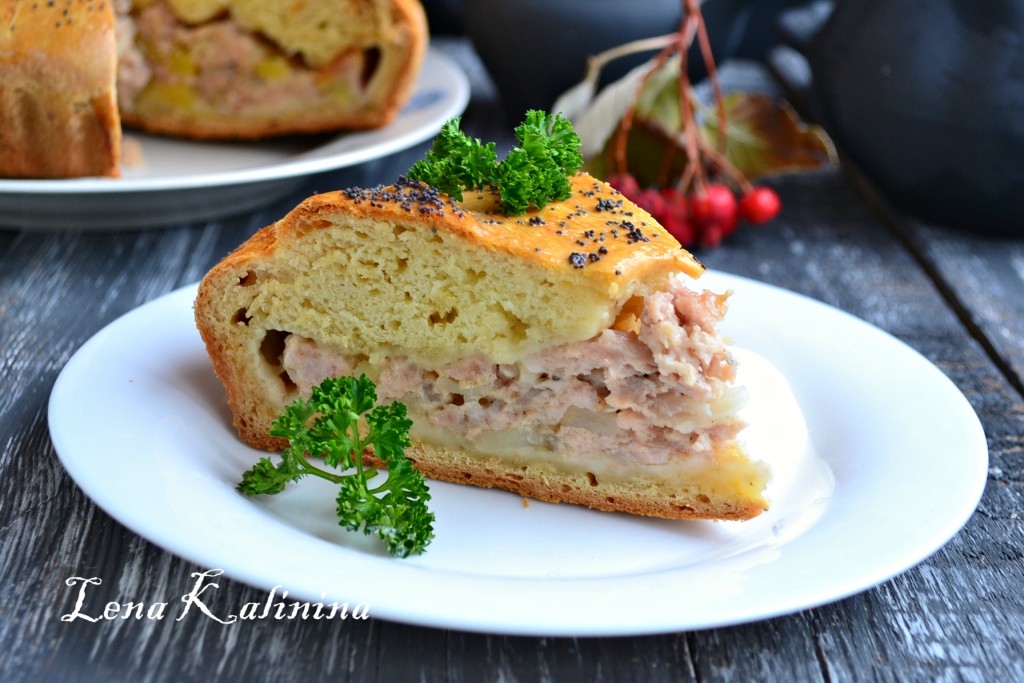 Рекомендую вам испечь отличный пирог на кефире с фаршем и картошкой. Тесто, замешанное на кефире, получается пышным и нежным, отлично сочетается с мясной начинкой. Пирог бесподобный - вкусный, сочный, сытный, с хрустящей корочкой! Попробуйте, ваши близкие будут в восторге!