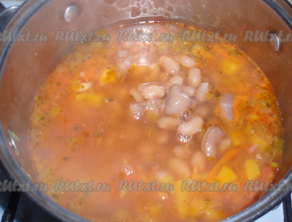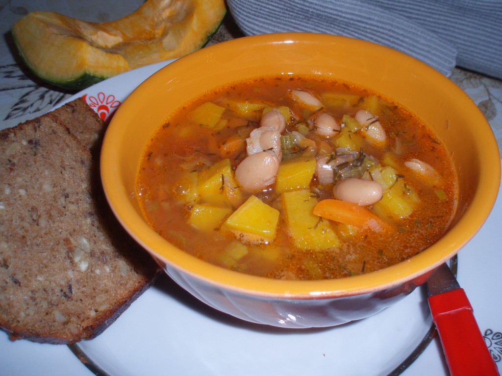 Очень вкусный, сытный и согревающий холодным зимним днем суп с фасолью и тыквой готов. Подавать горячим.