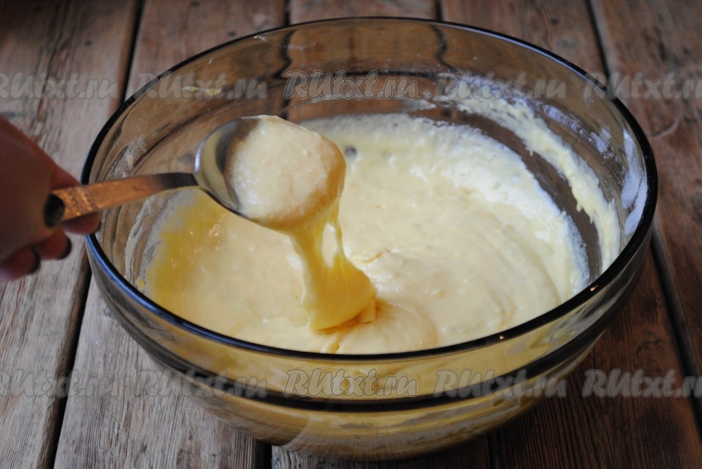 Тесто получится густым, оно будет не стекать с ложки, а сходить с нее тягучей массой (как на фото).