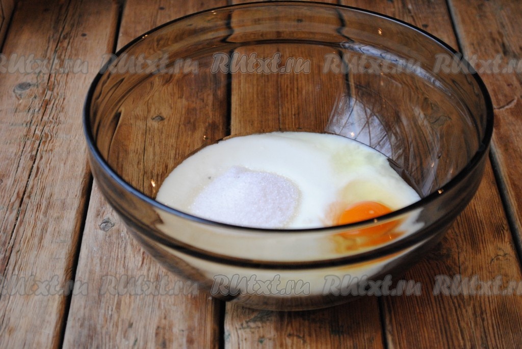 Порциями подсыпая просеянную муку, перемешать тесто, чтобы не было комочков.