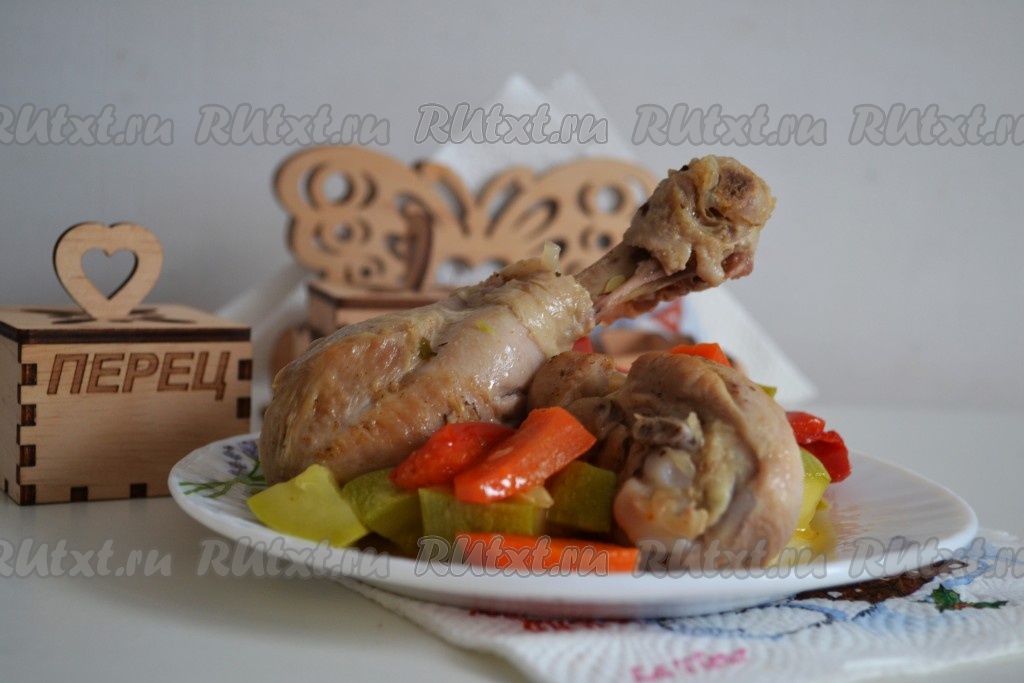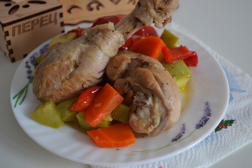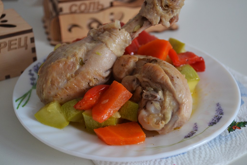 Сочные, ароматные и очень вкусные куриные голени, приготовленные с овощами в мультиварке, подать на стол в горячем виде.