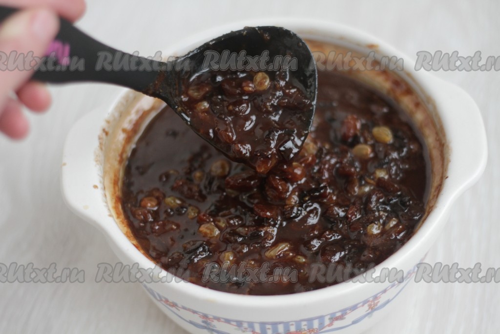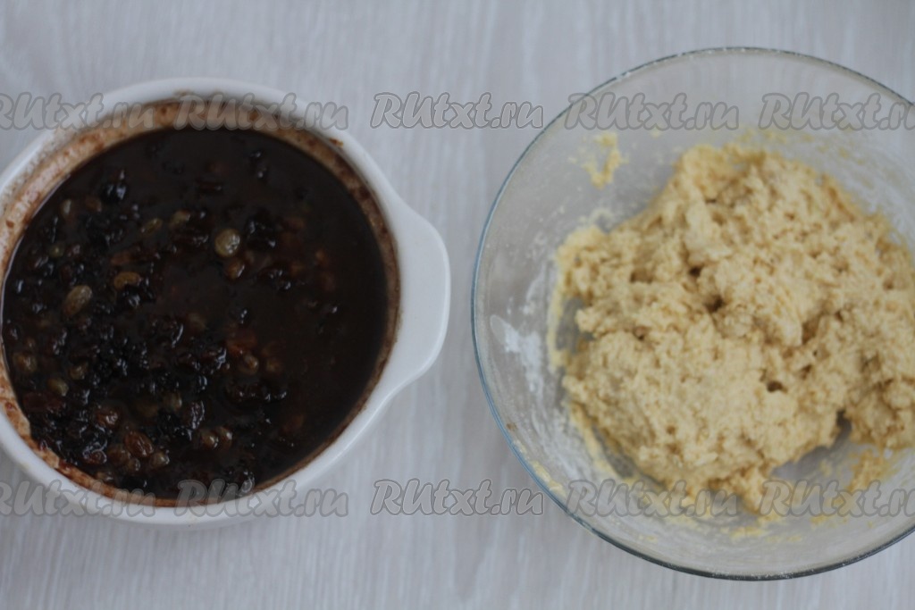 Когда смесь из сухофруктов остынет, но еще будет теплой, соединить её с тестом и хорошо перемешать.