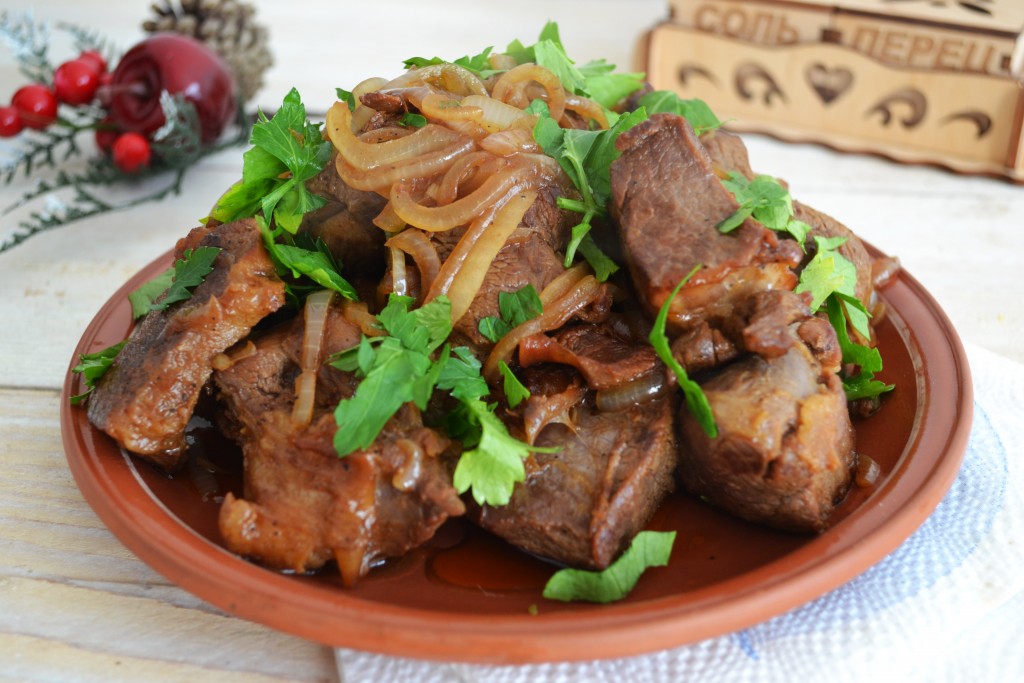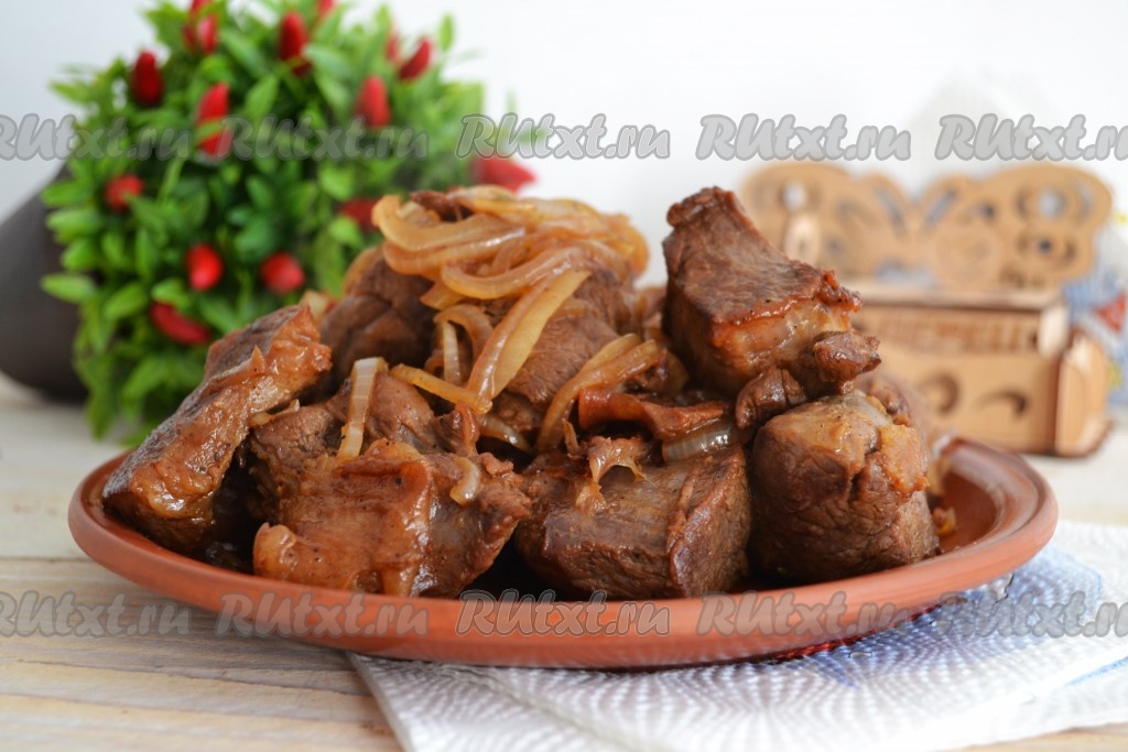 Подать вкуснейшую, сочную, нежную, ароматную баранину с луком, приготовленную на сковороде, на стол в горячем виде.
