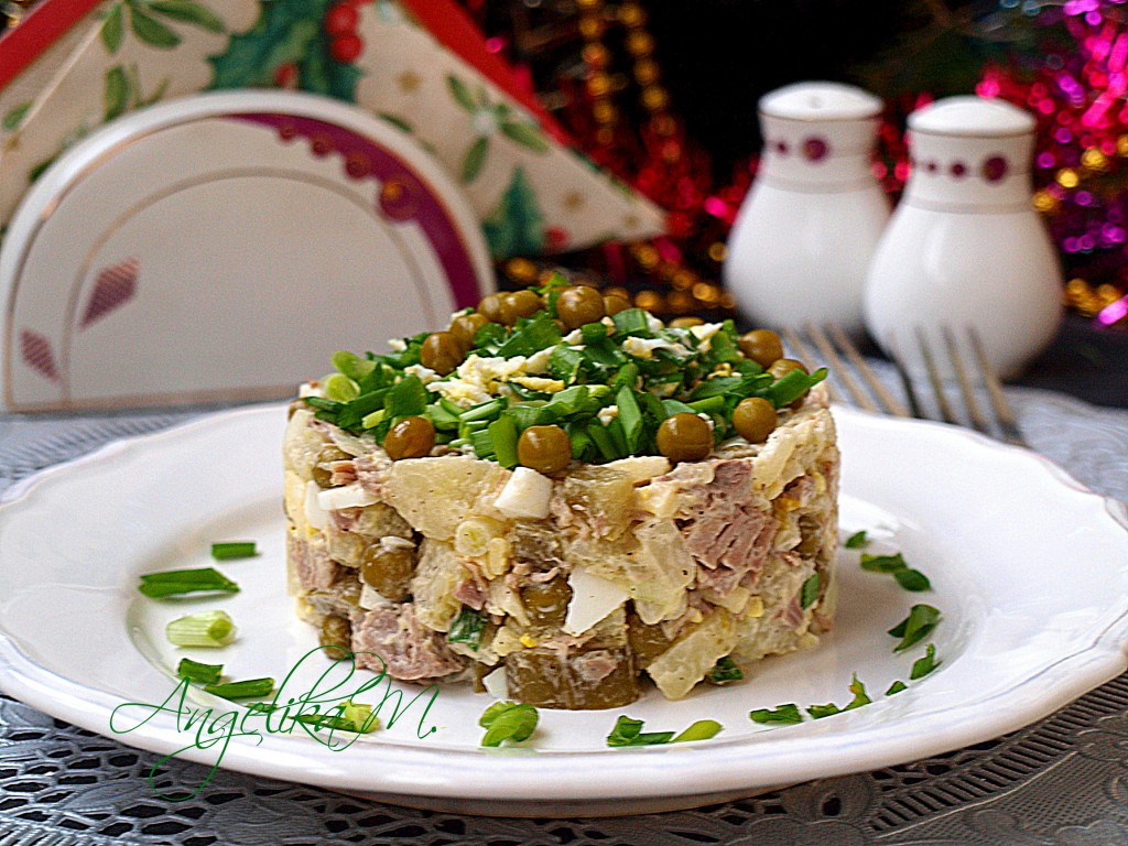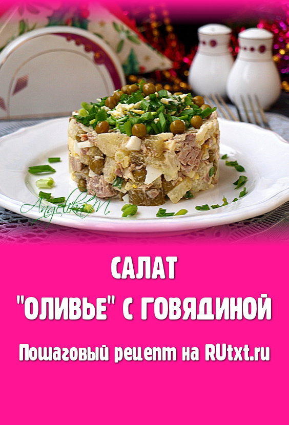 Праздничный новогодний стол невозможно представить без салата "Оливье". Эта традиция существует уже много лет и мало кто её не соблюдает. Во многих семьях "Оливье" продолжают подавать на праздничный стол наряду с новомодными и современными закусками. Предлагаю приготовить салат "Оливье" в более полезном варианте с отварной говядиной. Такой салат не менее сытный, чем традиционный вариант, но за счёт мяса гораздо полезнее. Также пикантность салату придаёт кислое яблоко.