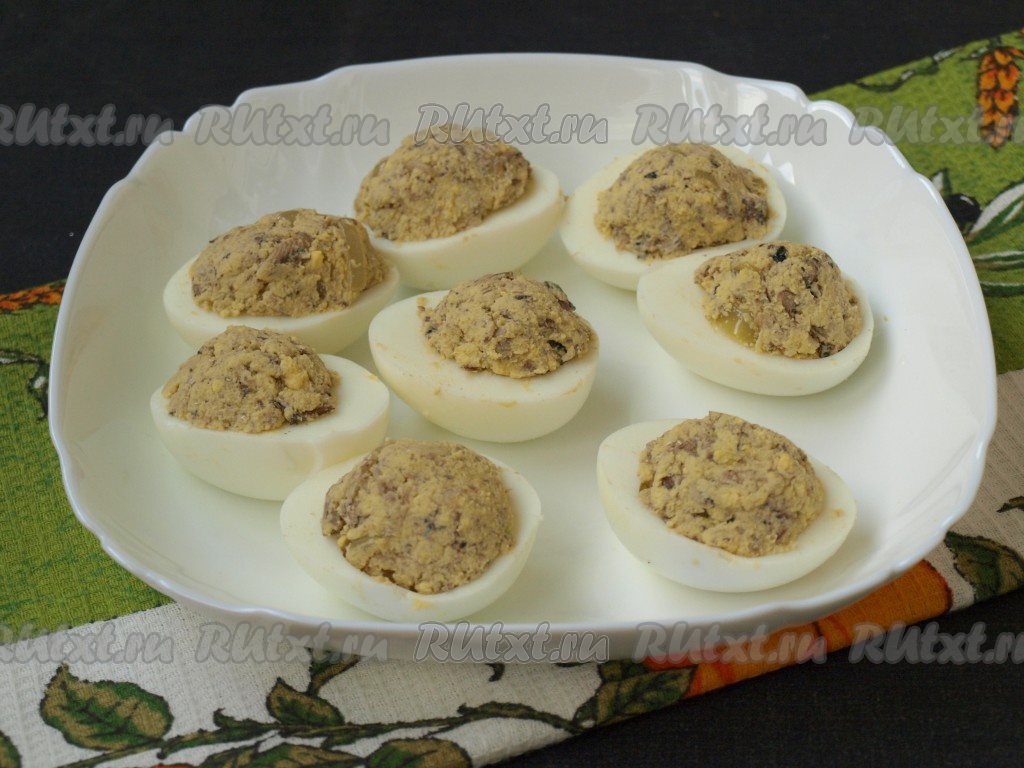 Половинки яиц наполнить подготовленной массой.