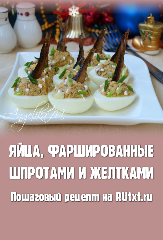 Затем шпроты, нарезанные кусочками, добавить к желткам и хорошо размять всё вместе вилкой. Если масса немного суховата, можно добавить немного масла, в котором шпроты были в банке. Получившуюся смесь из шпрот, желтков и лука посолить, поперчить по вкусу и масса для фарширования яиц готова.