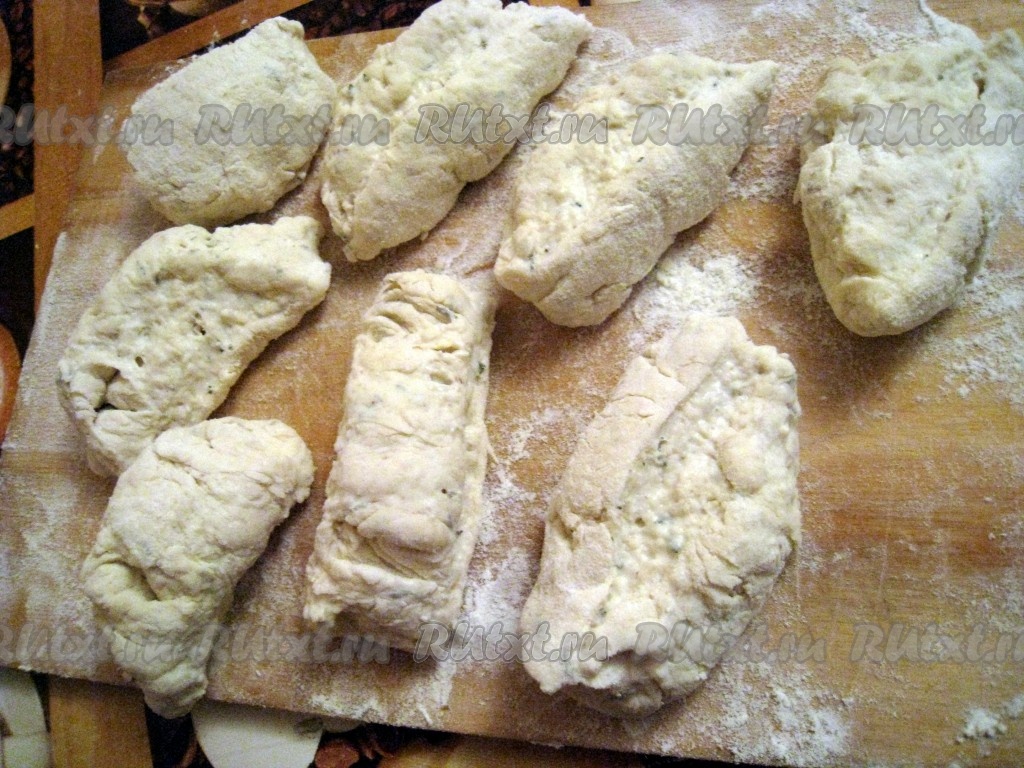 Разделить тесто на 8 одинаковых кусочков.