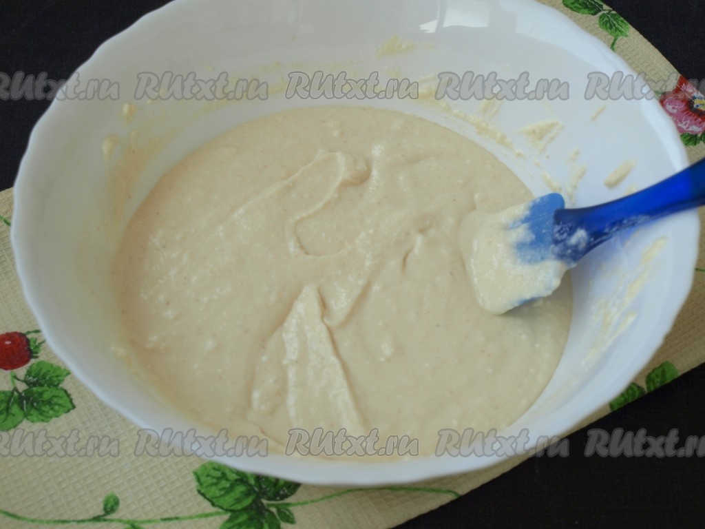Творожная масса должна получиться воздушной, по консистенции она будет напоминать сметану средней густоты. Дать творожной массе постоять 15 минут, чтобы манка набухла.
