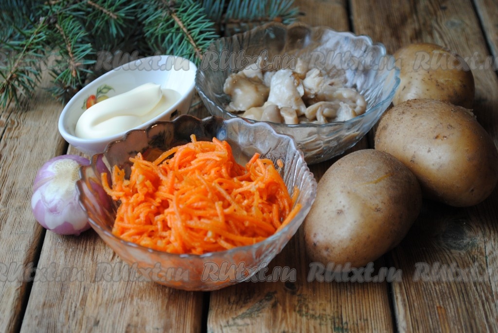 Ингредиенты для приготовления салата с маринованными грибами и корейской морковкой