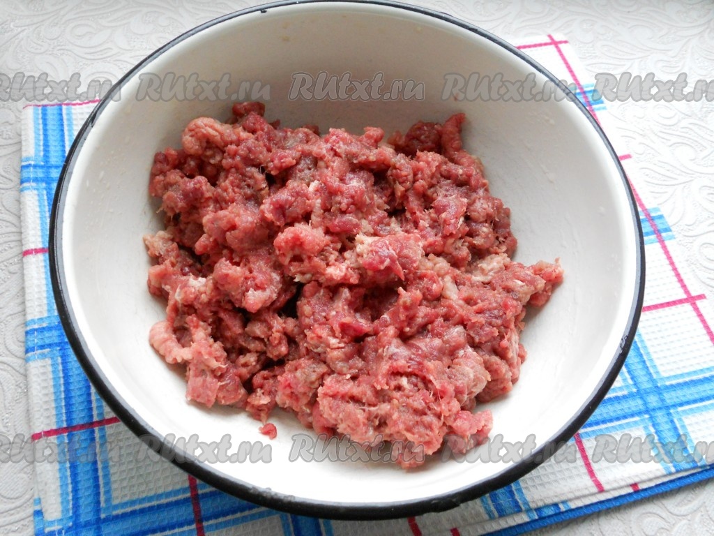 Перекрутить мясо на мясорубке с крупной решеткой.