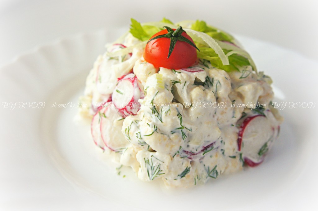 Вкусный, полезный салат из свежей цветной капусты готов! Приятного аппетита!
