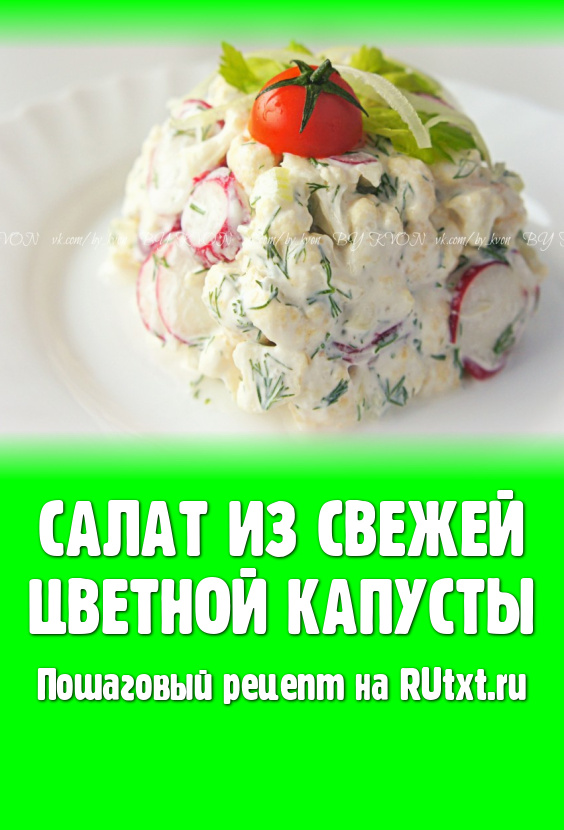 Сегодня хочется предложить вам рецепт очень полезного и вкусного салата из свежей цветной капусты. Цветная капуста сама по себе очень полезный и вкусный овощ, да ещё и диетический. Мы не будем использовать никакую термическую обработку, что максимально сохранит всю пользу этого блюда! Заранее предвидя ваши вопросы, скажу, кто не пробовал есть цветную капусту свежей, обязательно попробуйте, например, вот в таком салате. Итак, готовим ...