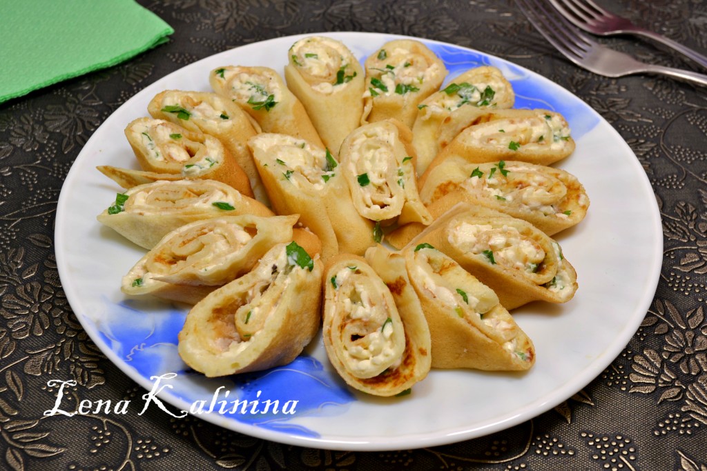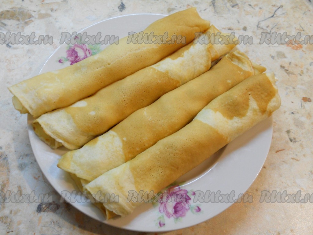 Свернуть блинчики плотными трубочками.