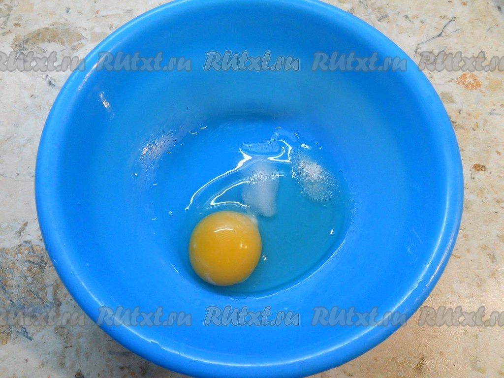 К яйцу добавить соль и сахар.