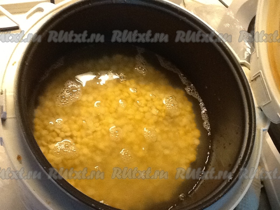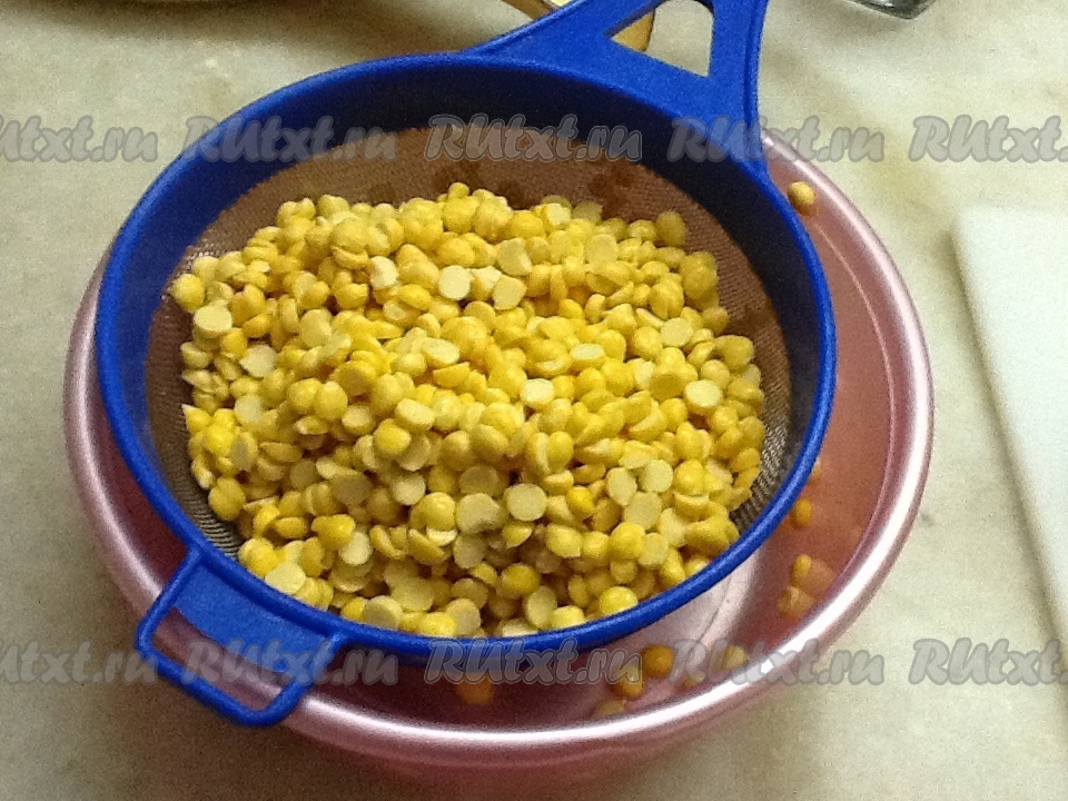 Горох замочить на ночь или на несколько часов. Затем воду слить.