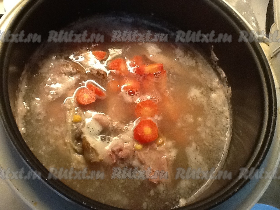 Через 10 минут добавить нарезанную морковь в мультиварку.
