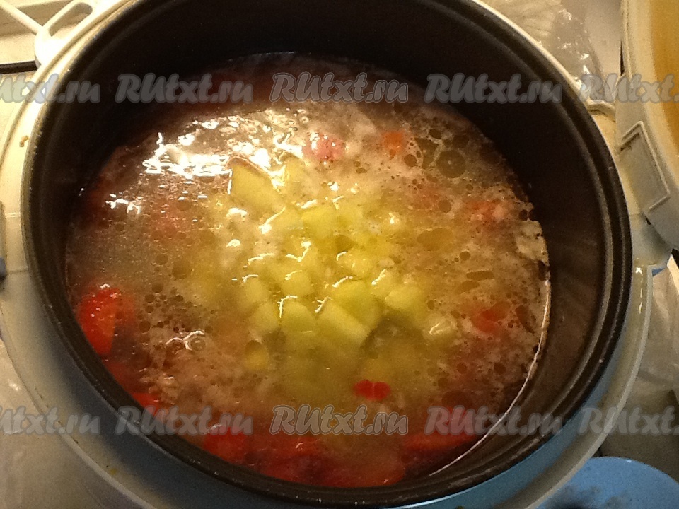 Нарезать картошку и следом за морковью добавить в мультиварку, чуть подсолить.