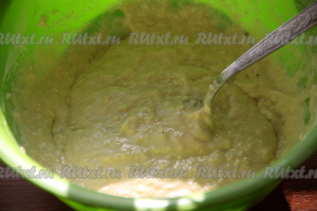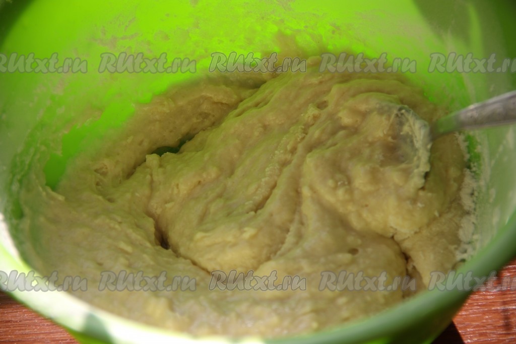 Перемешать тщательно ложкой и наше тесто для оладий с яблоками готово. Тесто получается достаточно густым и не стекает с ложки (если требуется, то добавьте 1-2 столовых ложки муки для большей густоты).