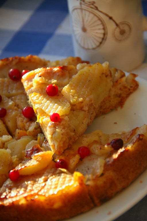 Готовый восхитительно вкусный яблочный пирог переворачиваем на блюдо и подаём к столу.