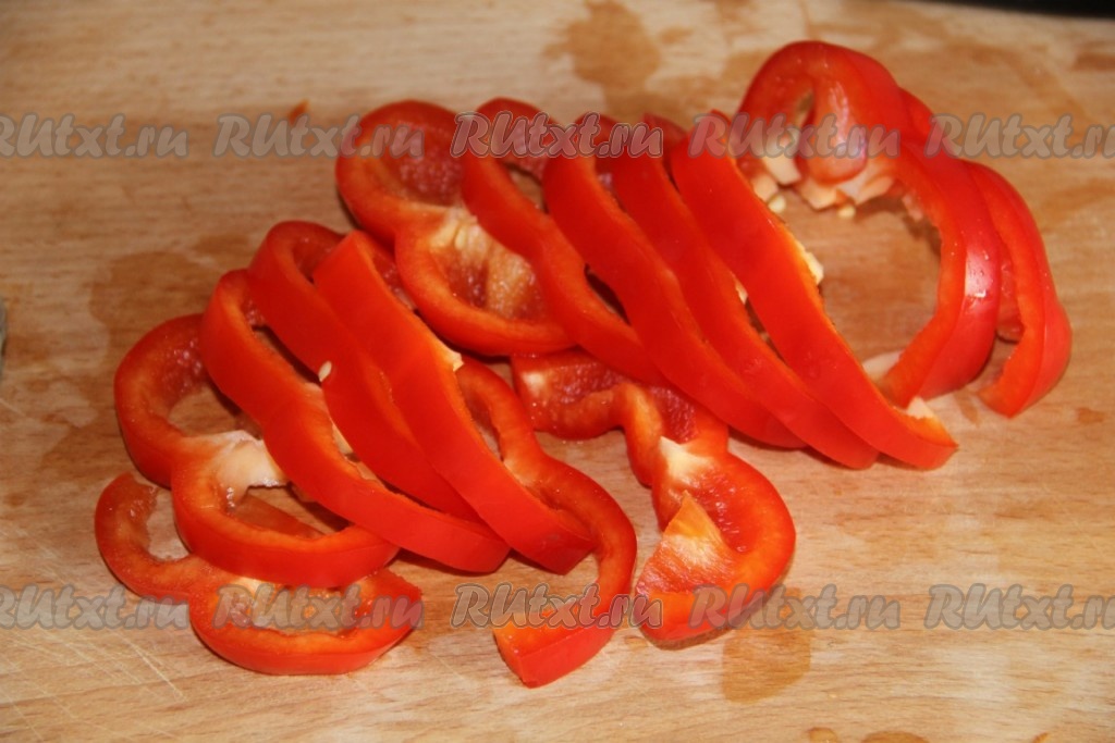 Перец нарезать соломкой.