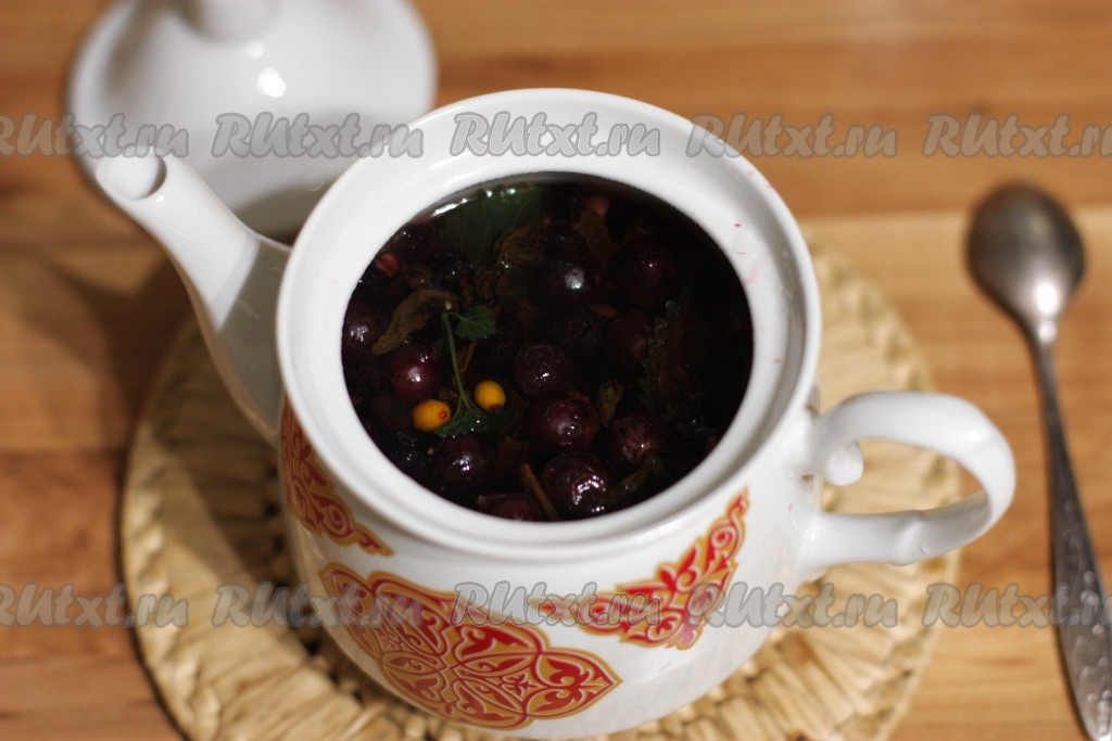 Аккуратно перемешать ингредиенты и дать настояться ягодному чаю в течение 7-10 минут, плотно накрыв чайник крышкой и прикрыв сверху салфеткой. Витаминный напиток готов!