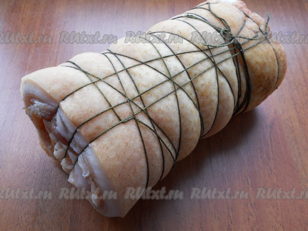 Далее сало свернуть в плотный рулет, тщательно перевязать толстой нитью или бичевкой.
