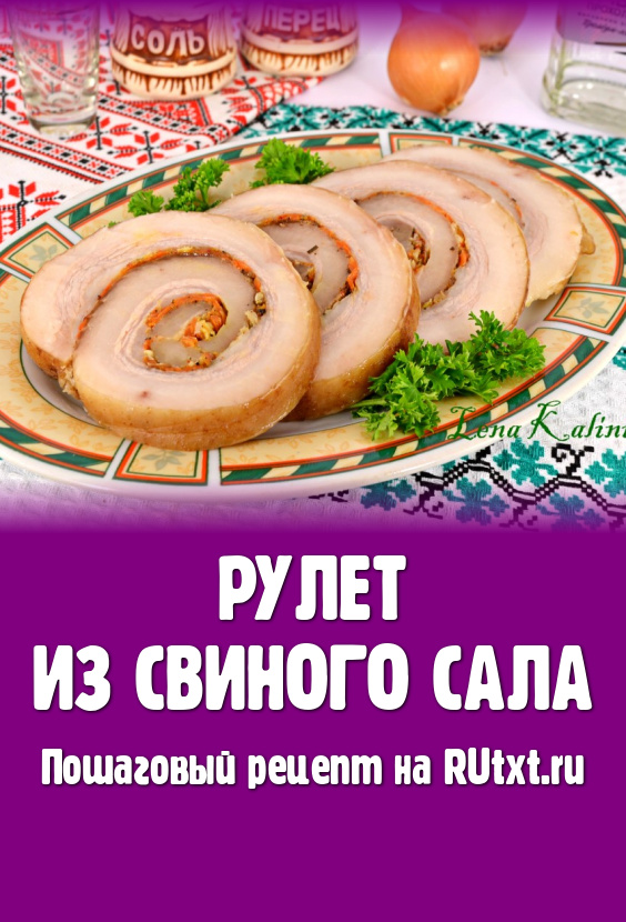Предлагаю вам попробовать отличный рулет из свиного сала. Готовится он совершенно просто, получается необычайно вкусным, нежным и ароматным. Для рулета нужно выбирать пласт тонкого сала, лучше - с мясом. Такой рулет можно использовать для бутербродов или в качестве отдельной закуски, подав к нему горчицу или хрен.