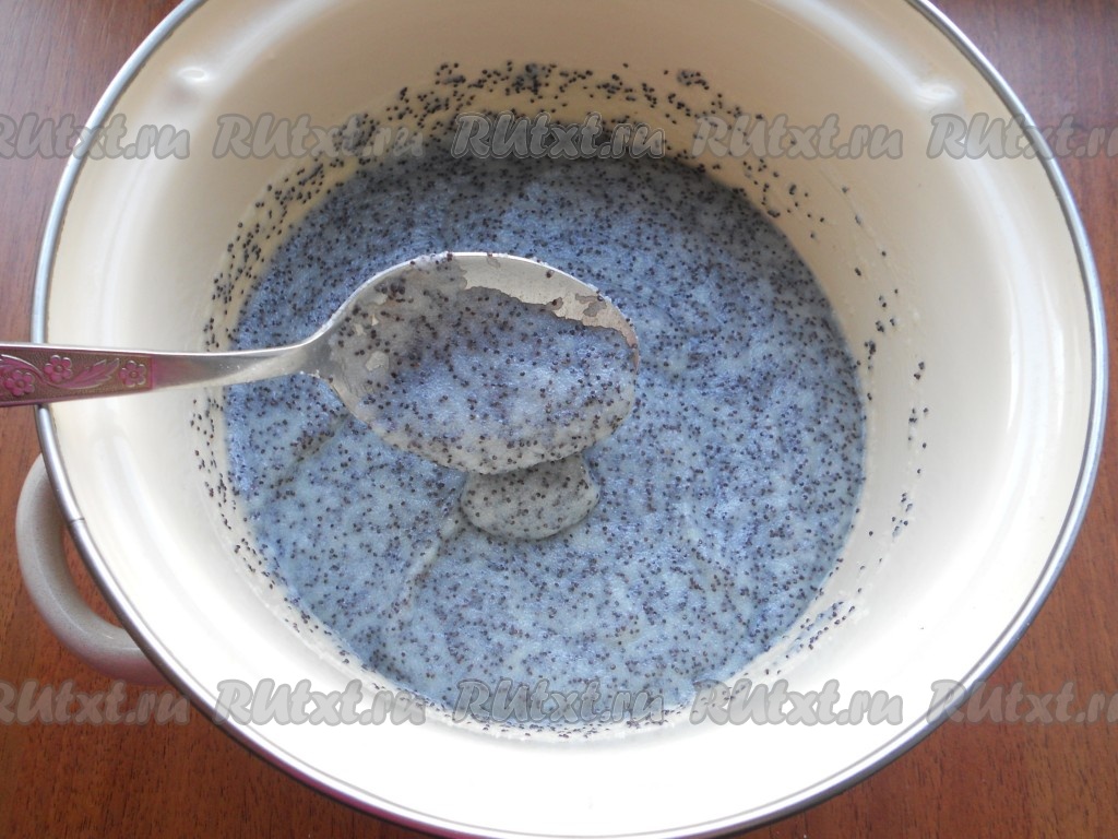 В кипящее молоко тонкой струйкой, непрерывно перемешивая, всыпать манку и промытый мак, довести до кипения, проварить, постоянно помешивая, на среднем огне около 2-3 минут (до лёгкого загустения). Убрать с огня манно-маковую массу, дать остыть до тёплого состояния.