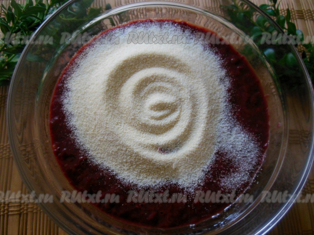 В получившуюся массу добавьте манную крупу, перемешайте и оставьте на 10-15 минут (для набухания манки). Фарш получится достаточно густым.