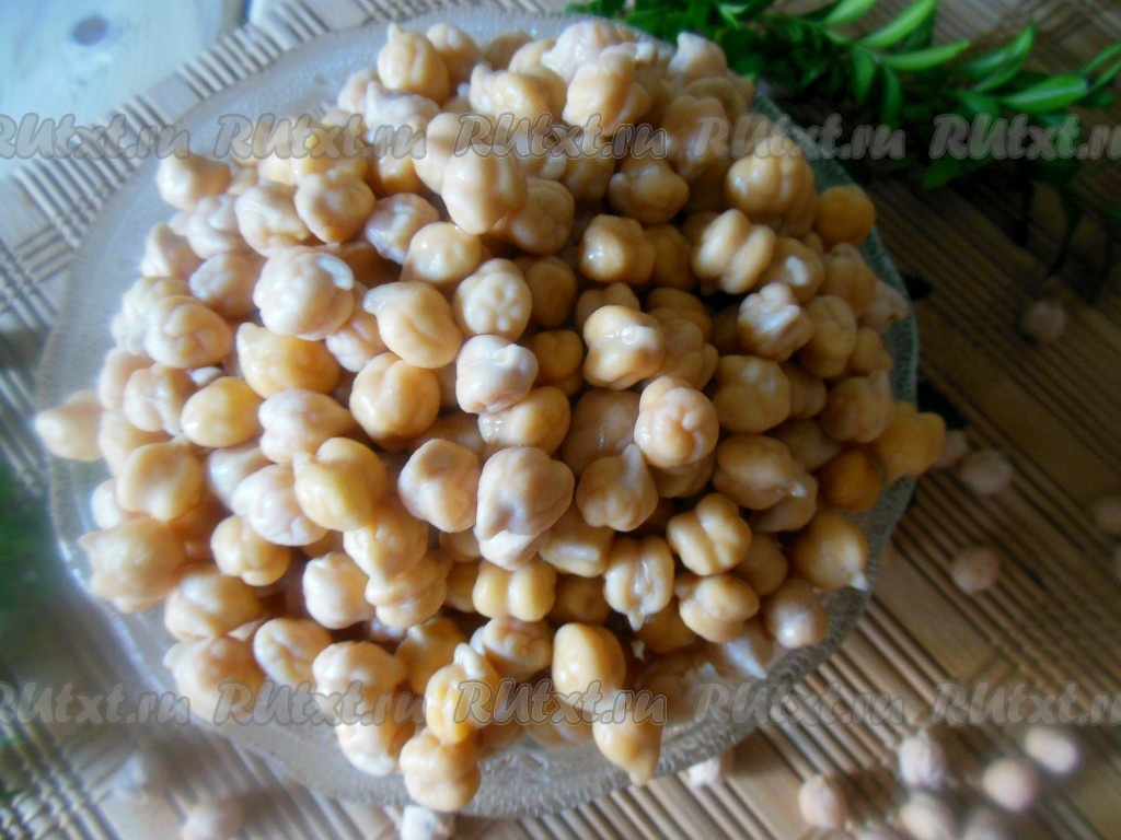 Нут промойте и замочите в холодной воде на 3-4 часа. Затем слейте воду, залейте нут 2-3 литрами чистой холодной воды и варите до готовности (около 40-60 минут). В процессе приготовления воду посолите.