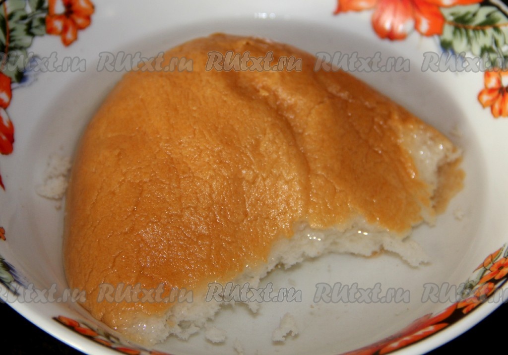 Булочку замочить в воде.
