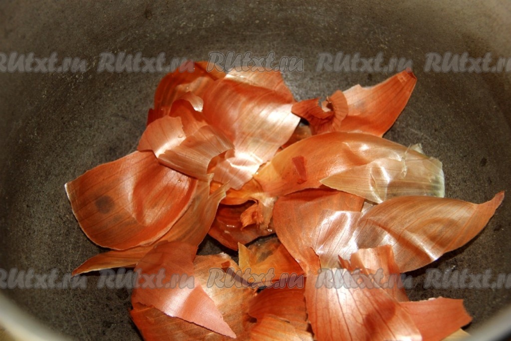 На дно казана (или толстостенной кастрюли) выложить предварительно промытую водой шелуху от лука.