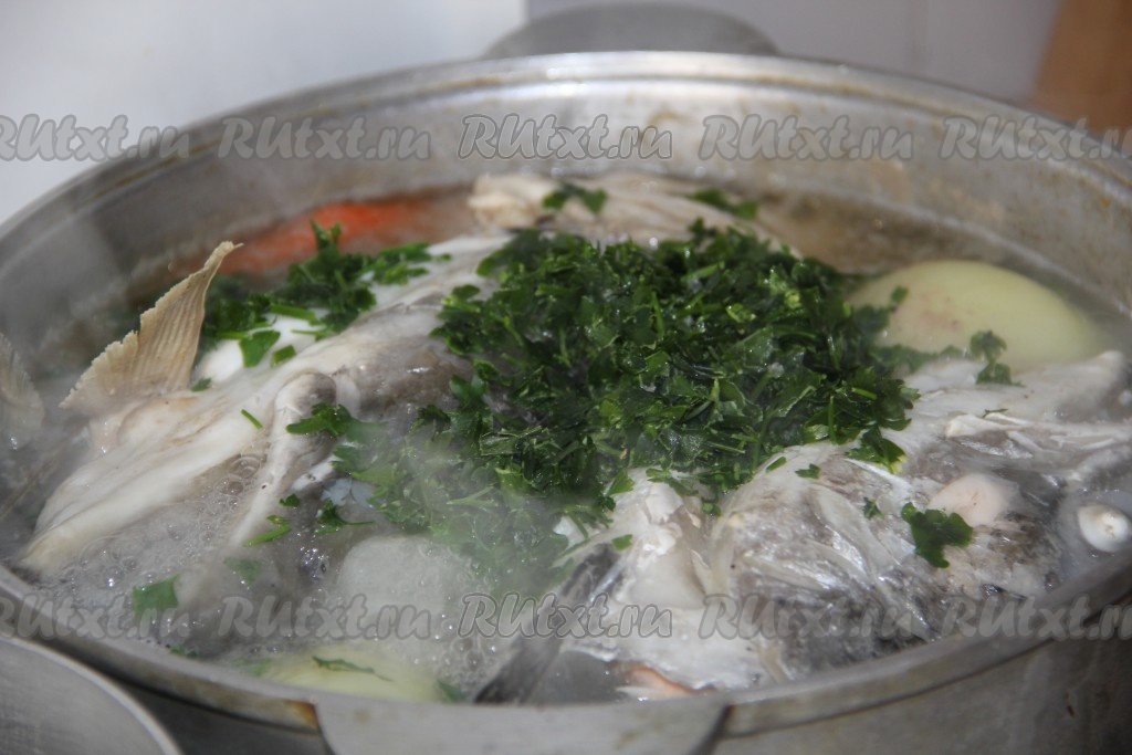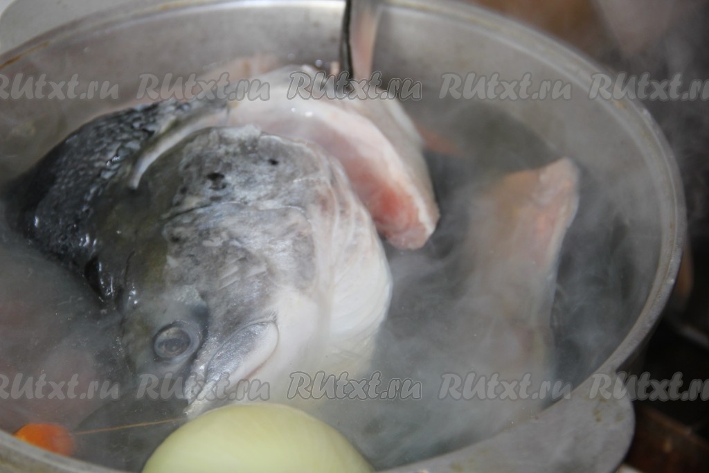 Добавляем очищенную рыбу и варим 15-20 минут до готовности.