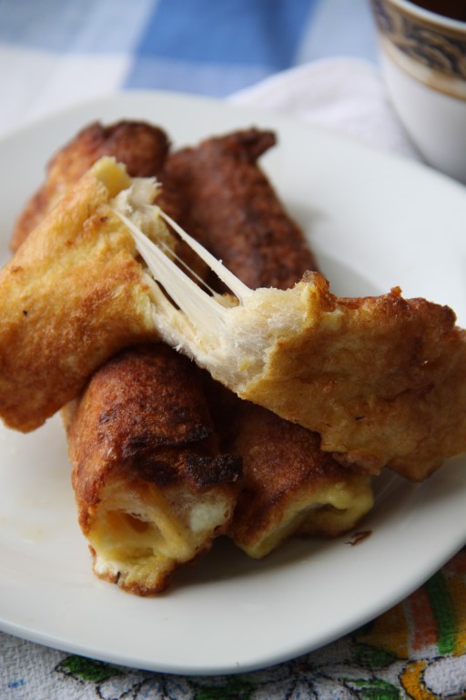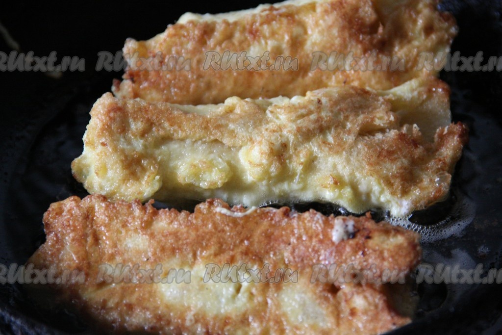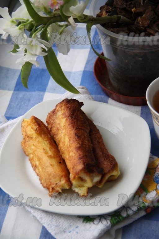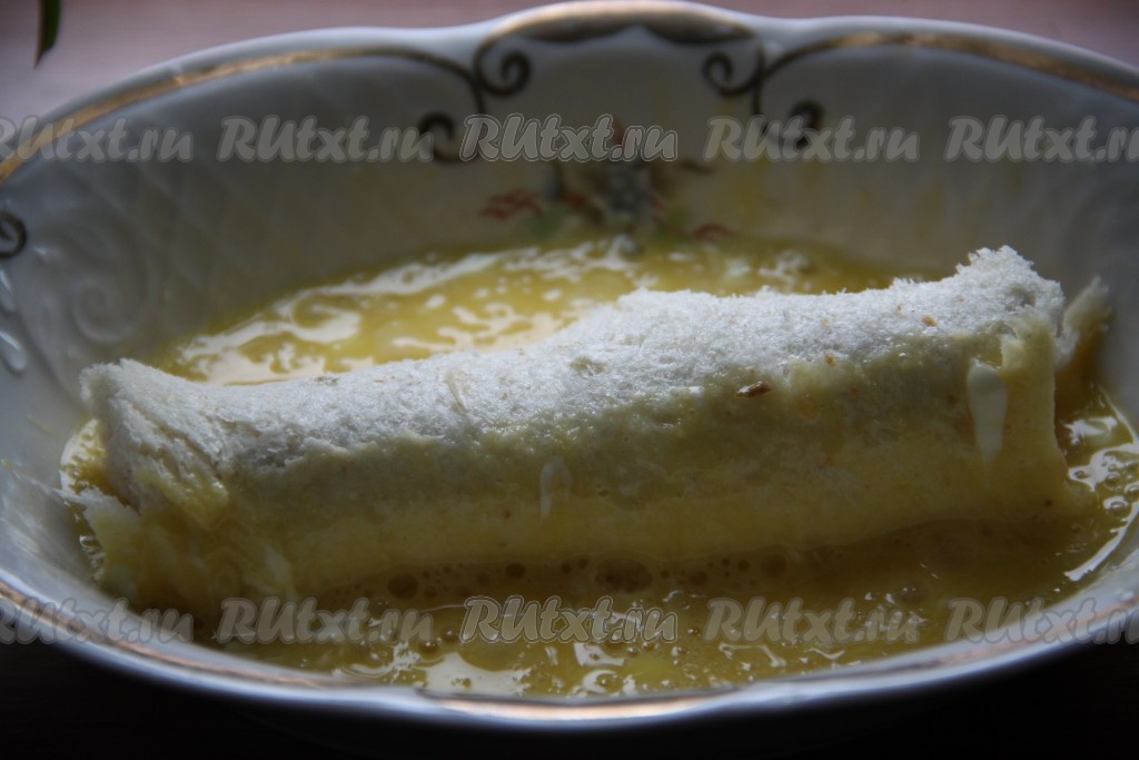 Обмакнуть хлебные рулетики со всех сторон в яично-молочную смесь.