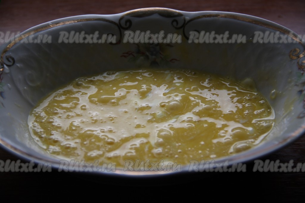 В отдельной тарелке взбить молоко с яйцами и солью.