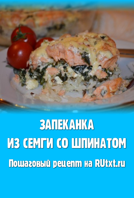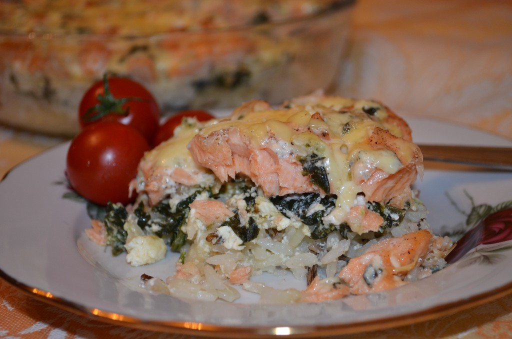 Я люблю запеканки за их простоту, быстрое приготовление и, безусловно, пользу. Для запеканки подойдут практически любые продукты - фрукты, овощи, мясо, рыба, творог и их разнообразное сочетание. Сегодня я предлагаю Вам попробовать запеканку из семги со шпинатом. Сытную, в то же время нежную и очень ароматную.