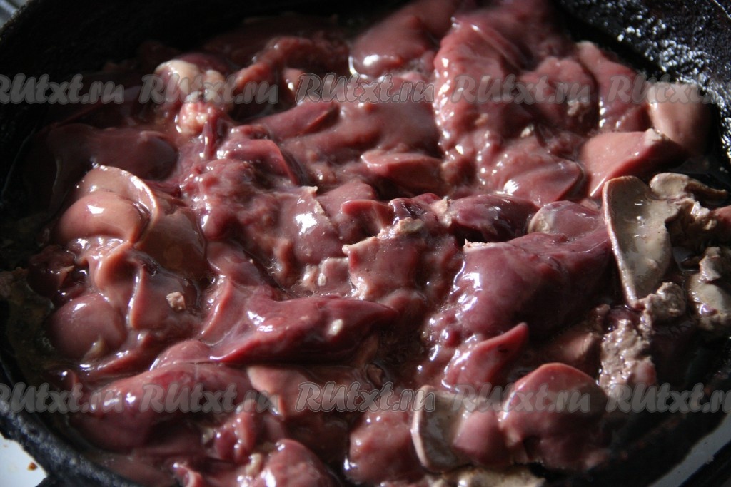 Куриную печень промыть и отправить на разогретую с растительным маслом сковороду.