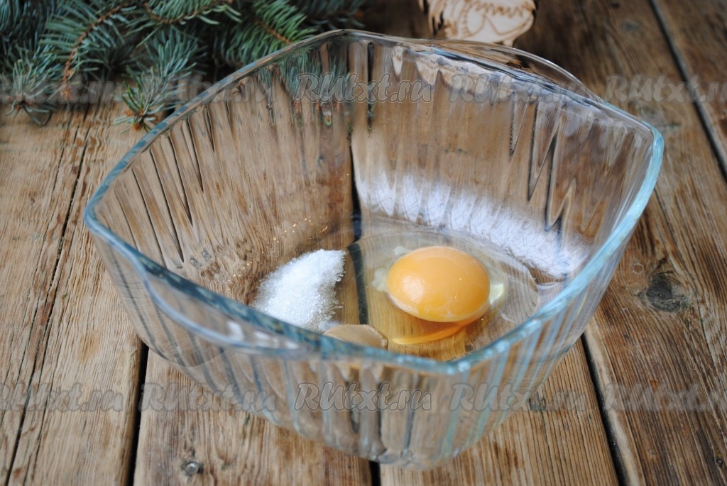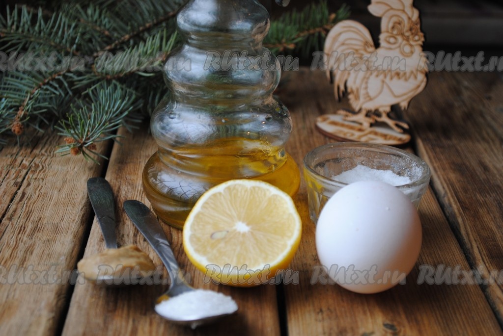 В ёмкость, удобную для взбивания блендером, добавить яйцо, сахар, горчицу и соль.