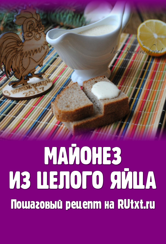 Вкусный, домашний майонез, приготовленный из целого яйца, переложить в чистую сухую баночку с крышкой и отправить в холодильник, чтобы он охладился. Майонез готов к употреблению.